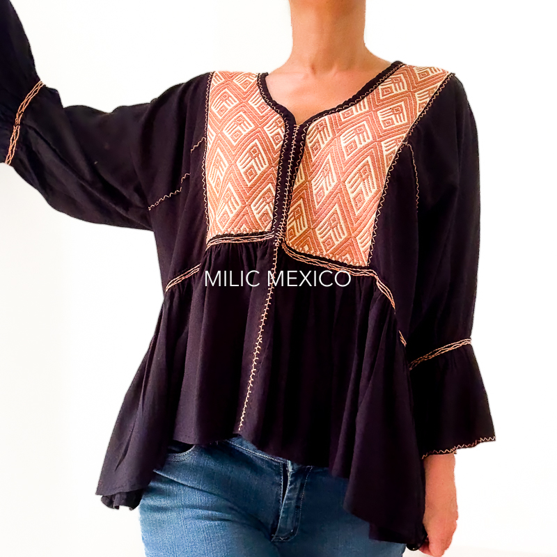 Blusas mexicanas artesanales hechas a mano en tela de rayón y pechera de textil de telar de cintura con detalles bordados. No pierdas la oportunidad de tener una prenda única.
