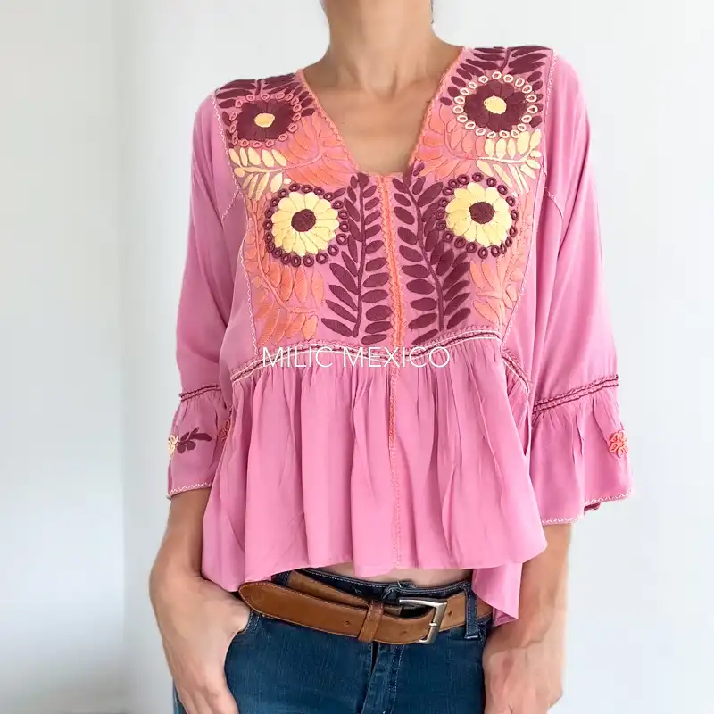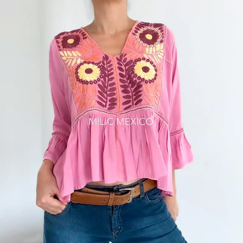 Blusas mexicanas artesanales hechas a mano en tela de rayón y pechera bordada. No pierdas la oportunidad de tener una prenda única. Origen: Aguacatenango, Chiapas