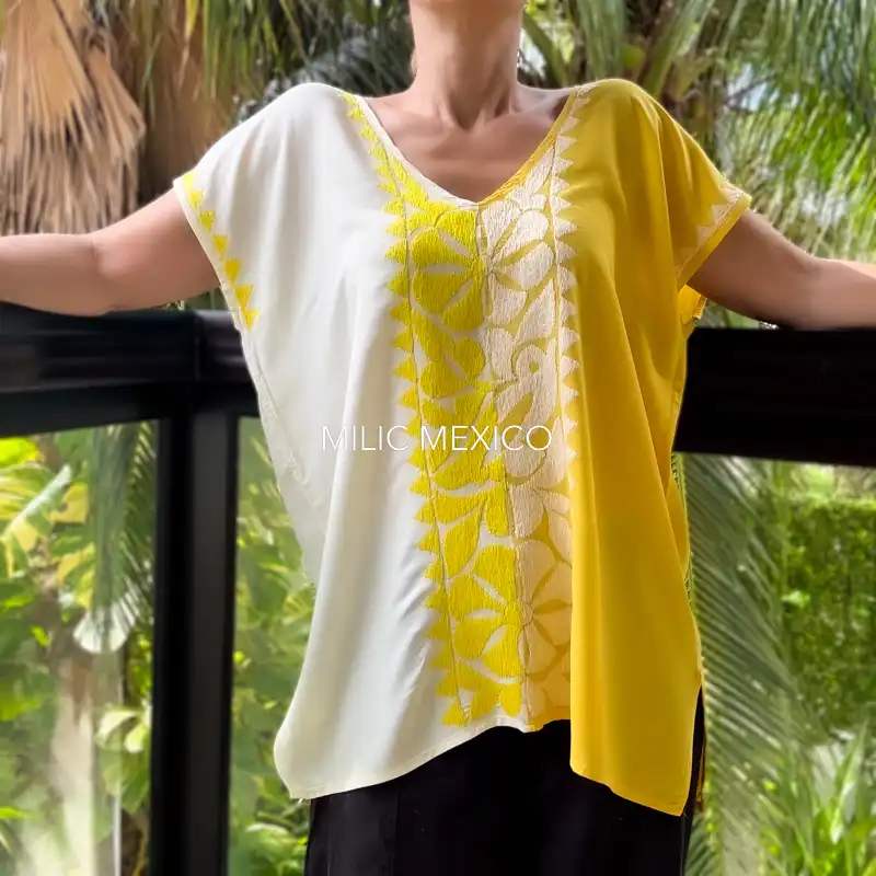 Etiquetas: Amarillo, Blusas Artesanales, Jalapa de Díaz, Oaxaca, Talla grande