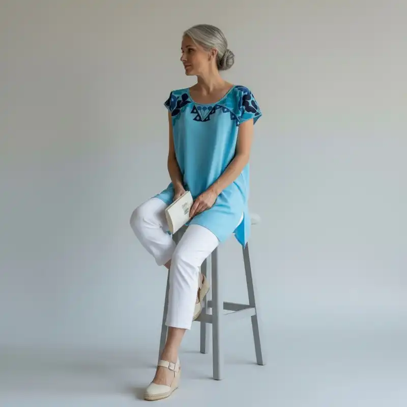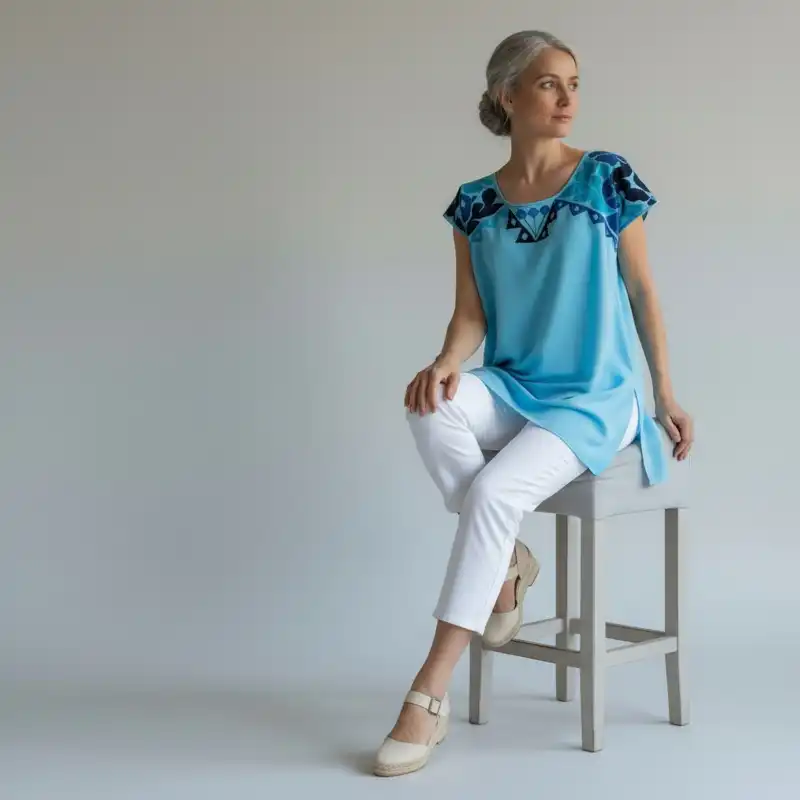 Blusa Jalapa cuello bordado cielo – M