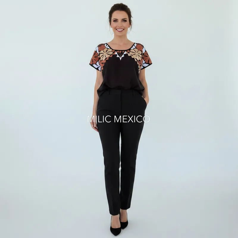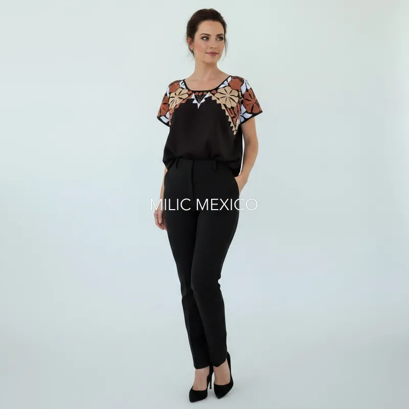 Blusa Jalapa cuello bordado negro/cafés – XG