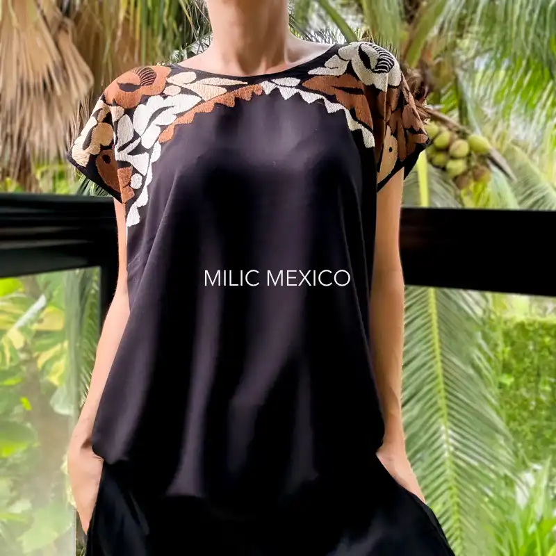 Etiquetas: Blusas Artesanales, Jalapa de Díaz, Negro, Oaxaca, Talla grande