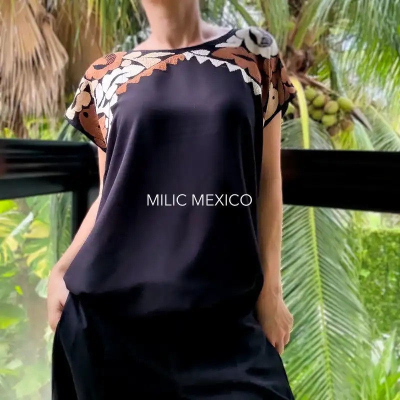 Las artesanas de Jalapa de Díaz en Oaxaca nos regalan un prenda de estilo fresco y sencillo para uso diario. Blusas artesanales mexicanas bordadas a mano en un solo lado sobre tela de rayón
