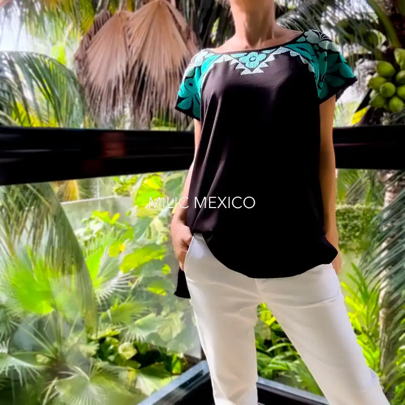 Etiquetas: Blusas Artesanales, Jalapa de Díaz, Negro, Oaxaca, Talla mediana