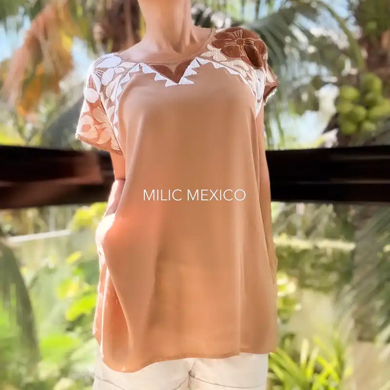 Etiquetas: Beige, Blusas Artesanales, Café, Jalapa de Díaz, Oaxaca, Talla grande