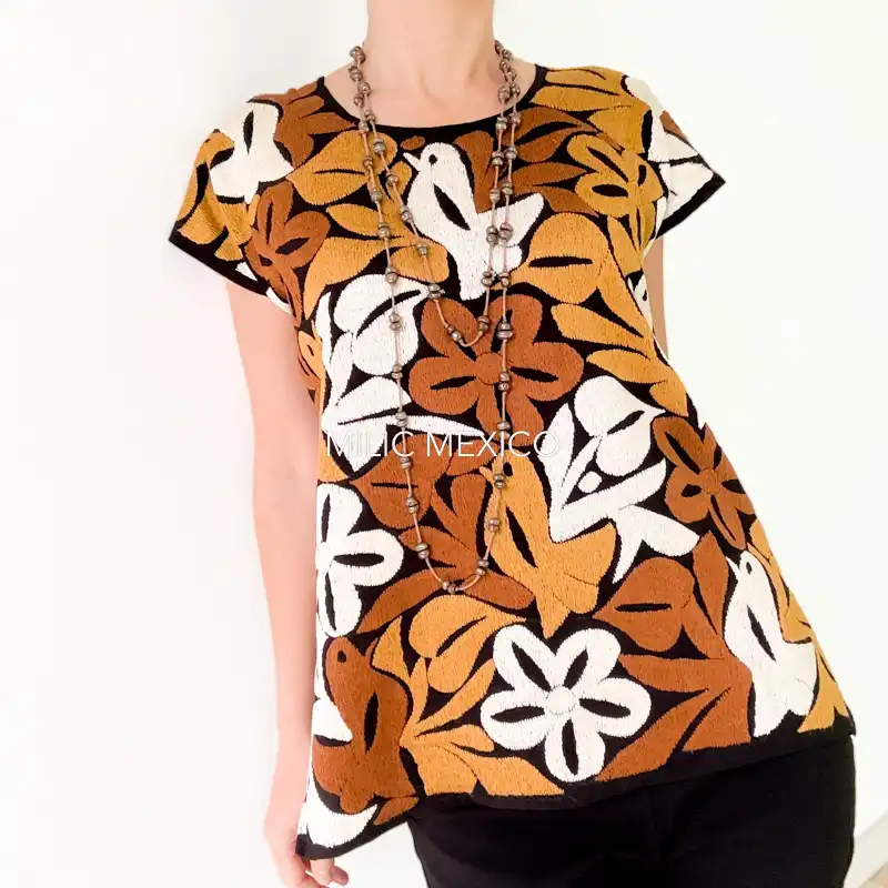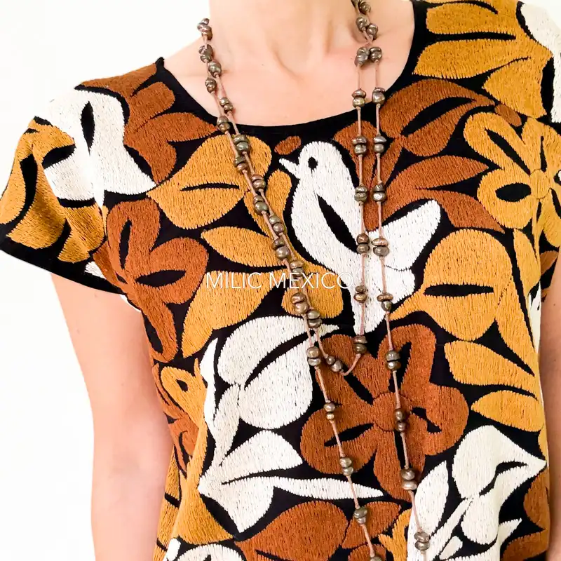 Etiquetas: Blusas Artesanales, Café, Jalapa de Díaz, Negro, Oaxaca, Talla mediana