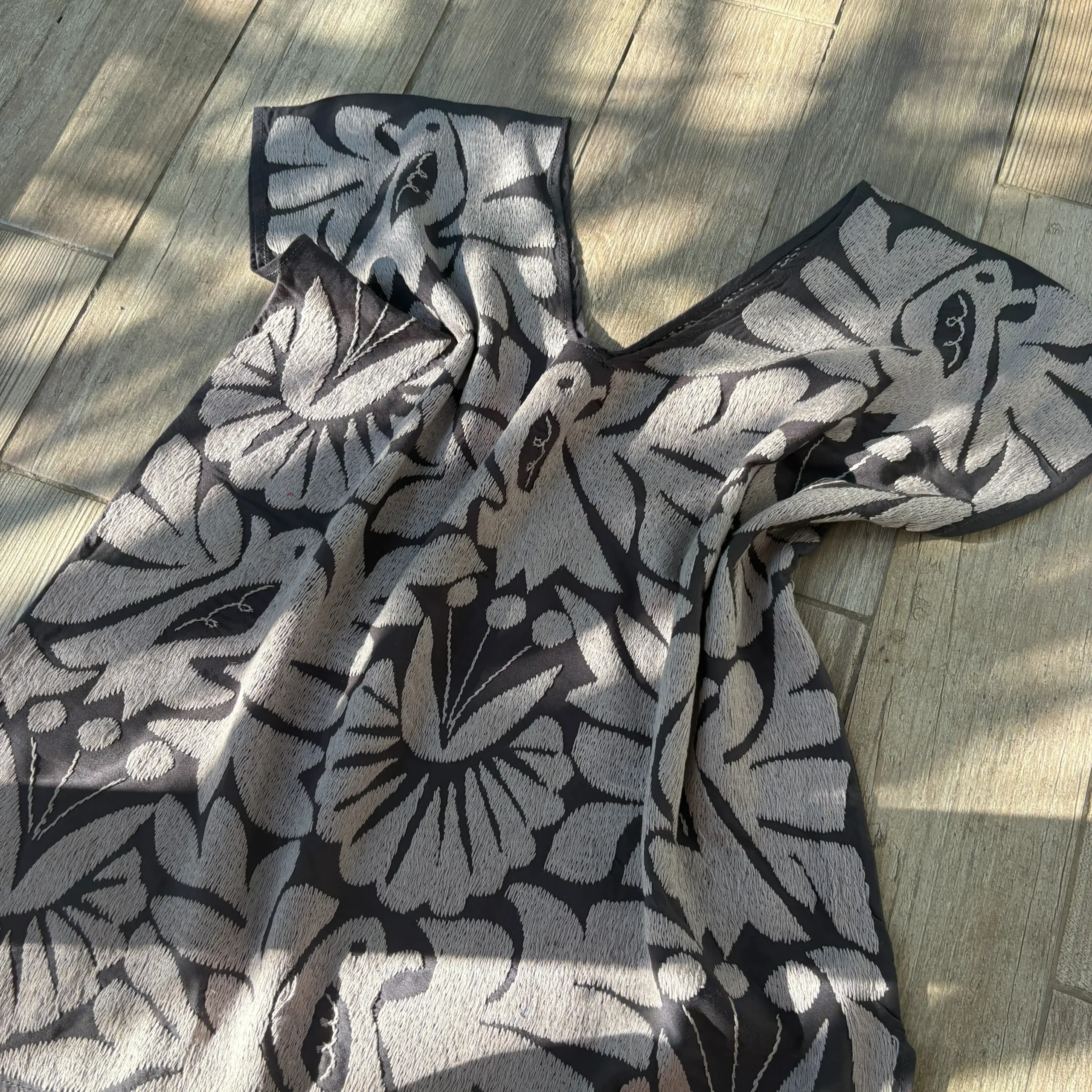 Etiquetas: Blusas Artesanales, Gris, Jalapa de Díaz, Oaxaca, Talla mediana