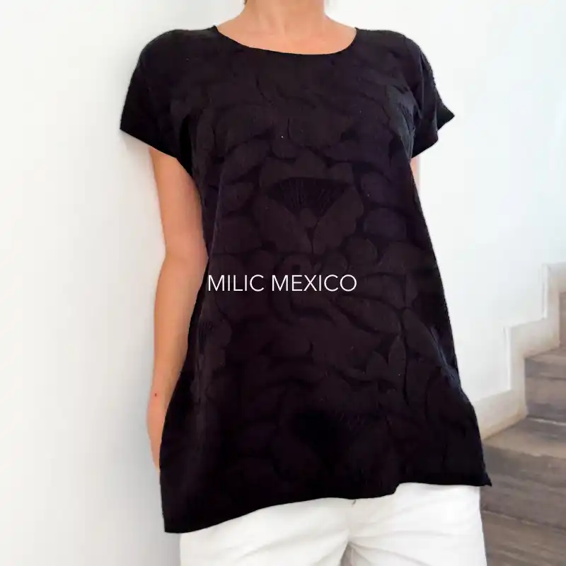 Etiquetas: Blusas Artesanales, Jalapa de Díaz, Negro, Oaxaca, Talla mediana