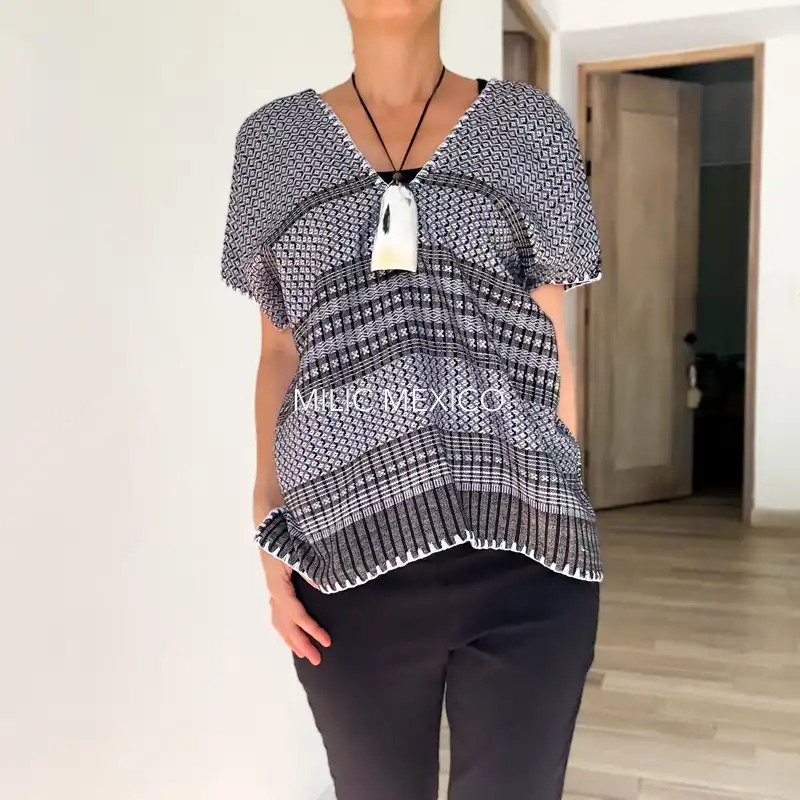 Etiquetas: Blusas, Blusas Artesanales, Gris, Mitla, Oaxaca, Plata, Talla XG
