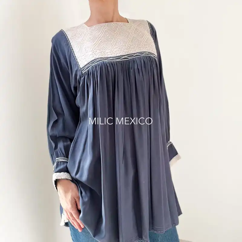 Telar de cintura y rayón. Hecho a mano en nuestra colección de blusas bordadas mexicanas.
