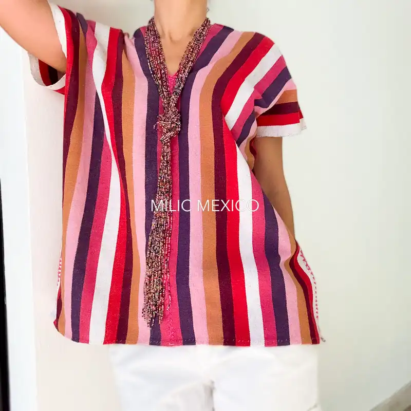 Blusa San Juan Cotzocón rayas multicolor – G