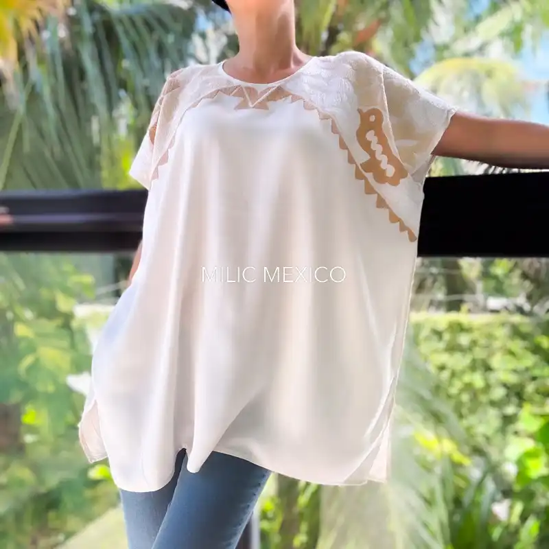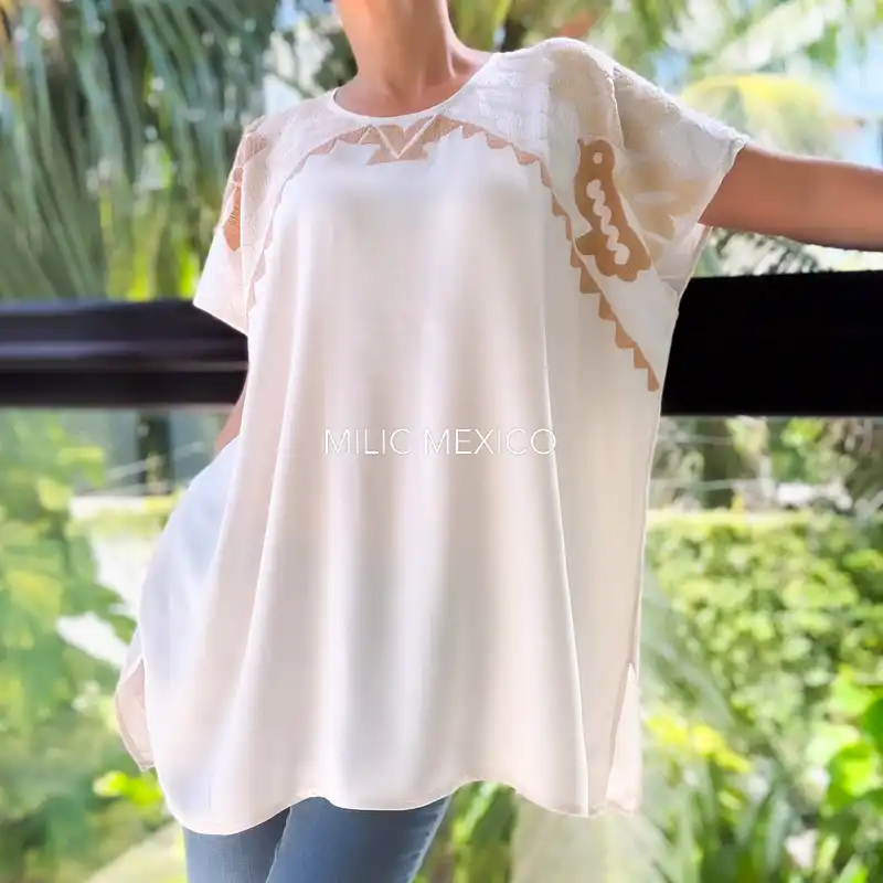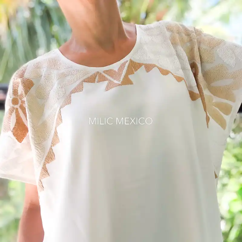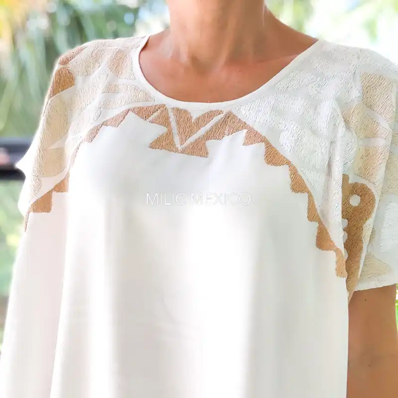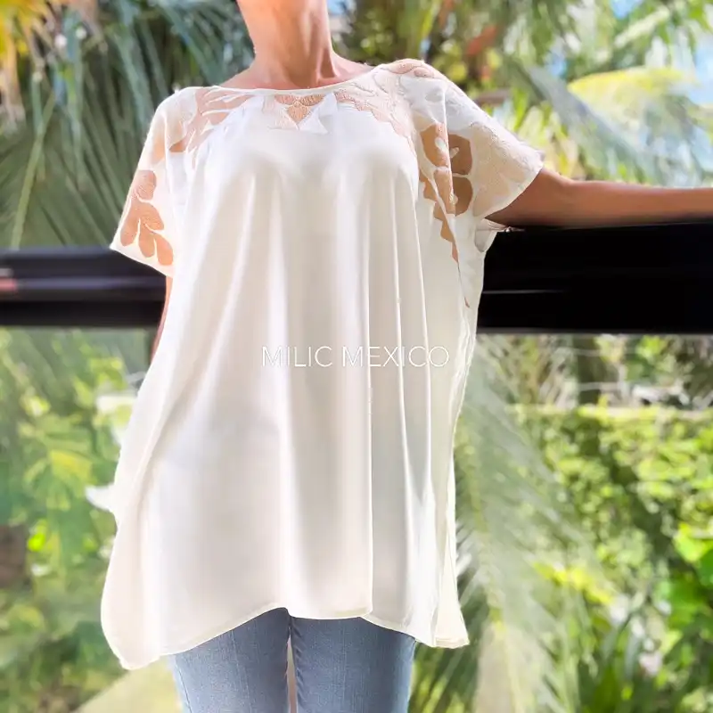 Las artesanas de Jalapa de Díaz en Oaxaca nos regalan un prenda de estilo fresco y sencillo para uso diario. Blusas artesanales mexicanas bordadas a mano en un solo lado sobre tela de rayón