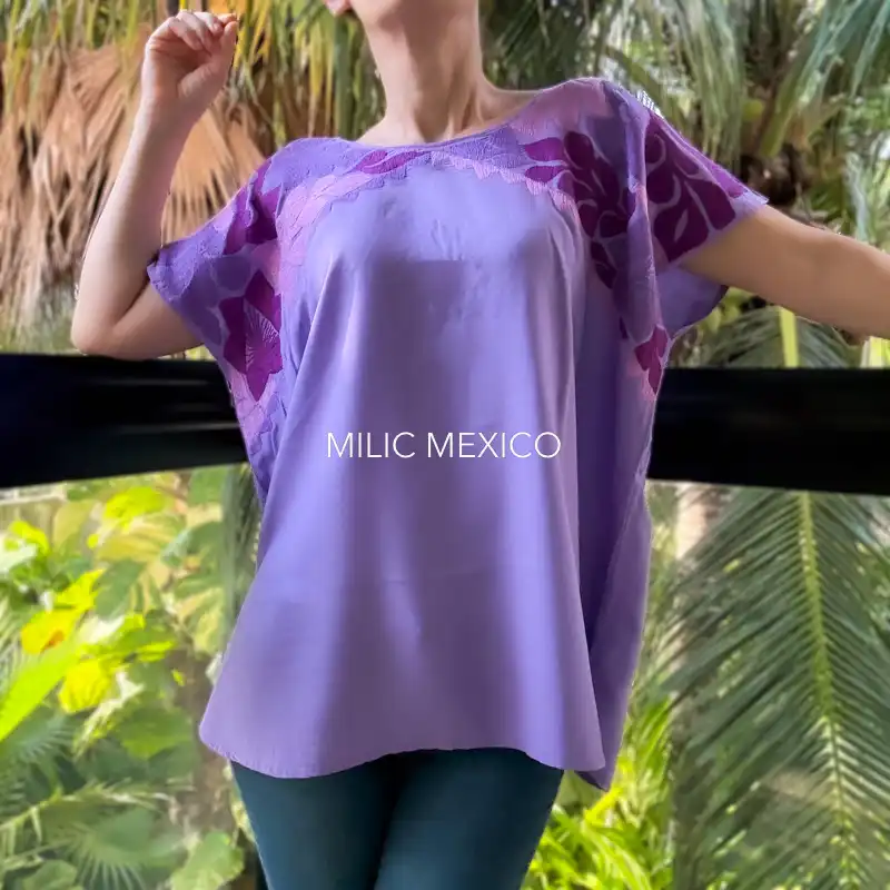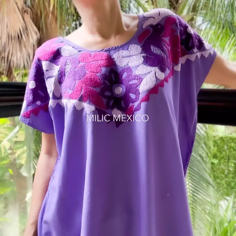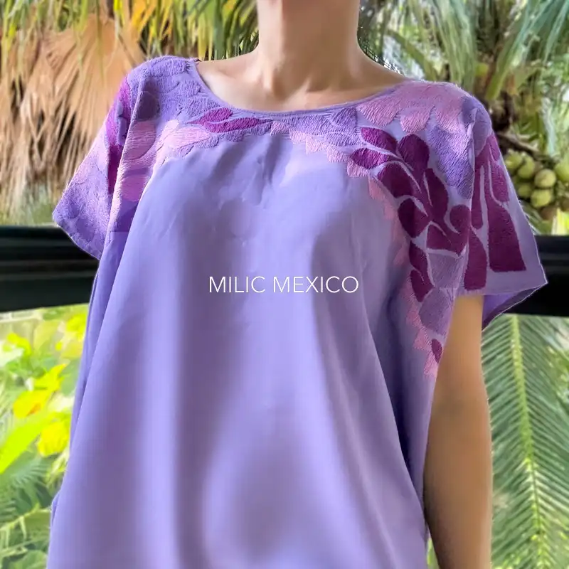 Las artesanas de Jalapa de Díaz en Oaxaca nos regalan un prenda de estilo fresco y sencillo para uso diario. Blusas artesanales mexicanas bordadas a mano en un solo lado sobre tela de rayón