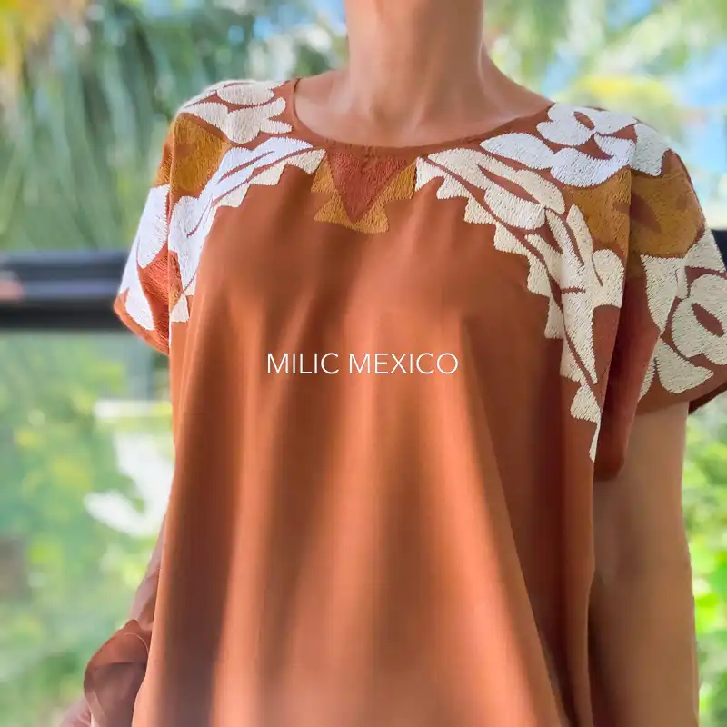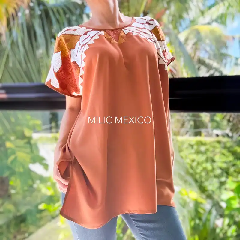 Las artesanas de Jalapa de Díaz en Oaxaca nos regalan un prenda de estilo fresco y sencillo para uso diario. Blusas artesanales mexicanas bordadas a mano en un solo lado sobre tela de rayón