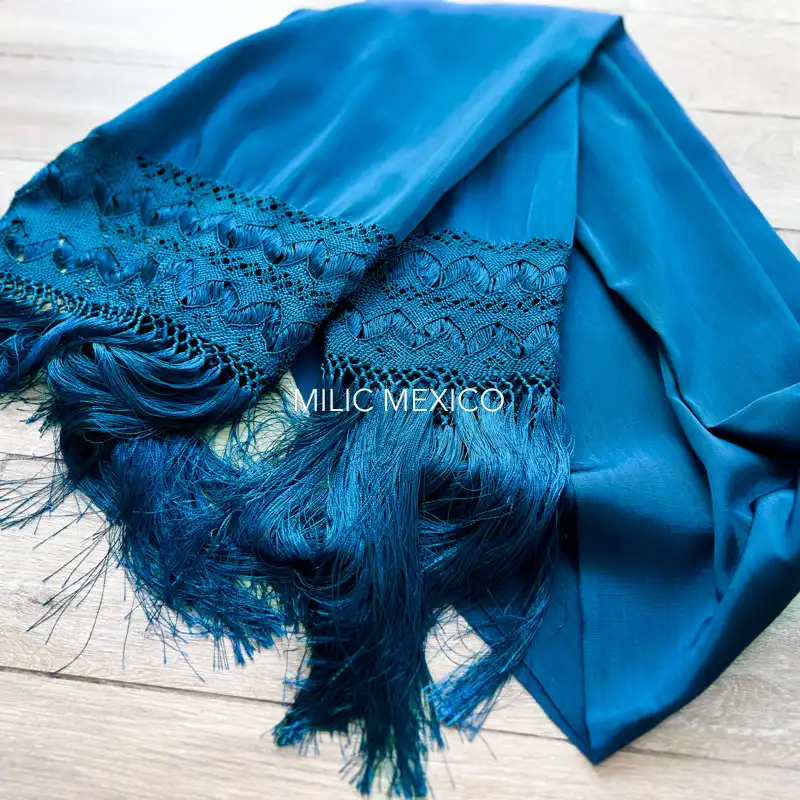 Chal de telar Santa María del Río azul