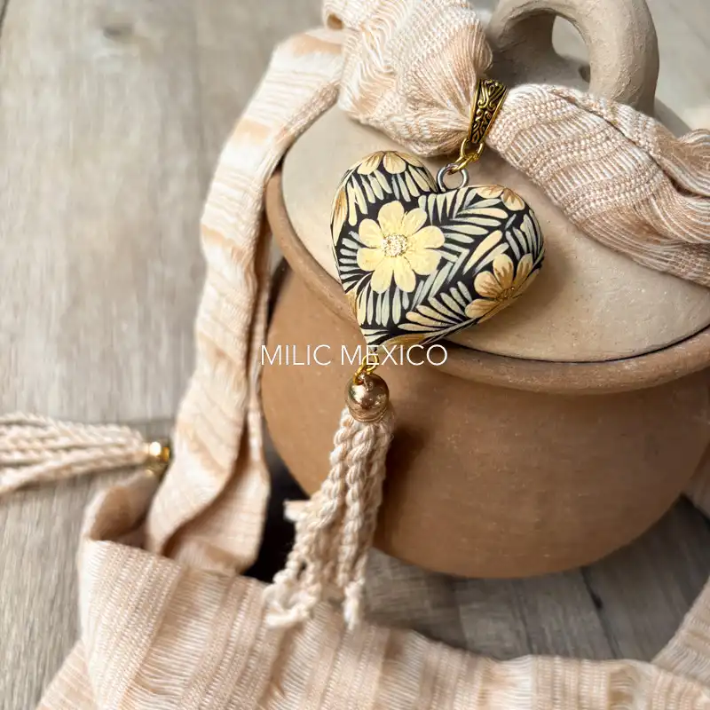 Collar Artesanal Corazón policromado beige largo