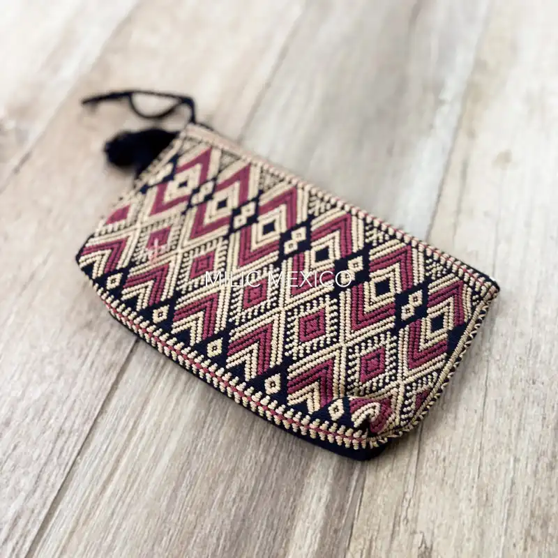 Cosmetiqueras artesanales mexicanas tejidas en telar de cintura, forradas en su interior y con cierre. Estas simpáticas y versátiles bolsitas están elaboradas en la comunidad de San Andrés Larrainzar, Chiapas. El exterior está tejido con hilo de algodón, el forro interior, de tela sintética. Nuestras bolsas artesanales MILIC están elaboradas por artesanos mexicanos de la mejor calidad.