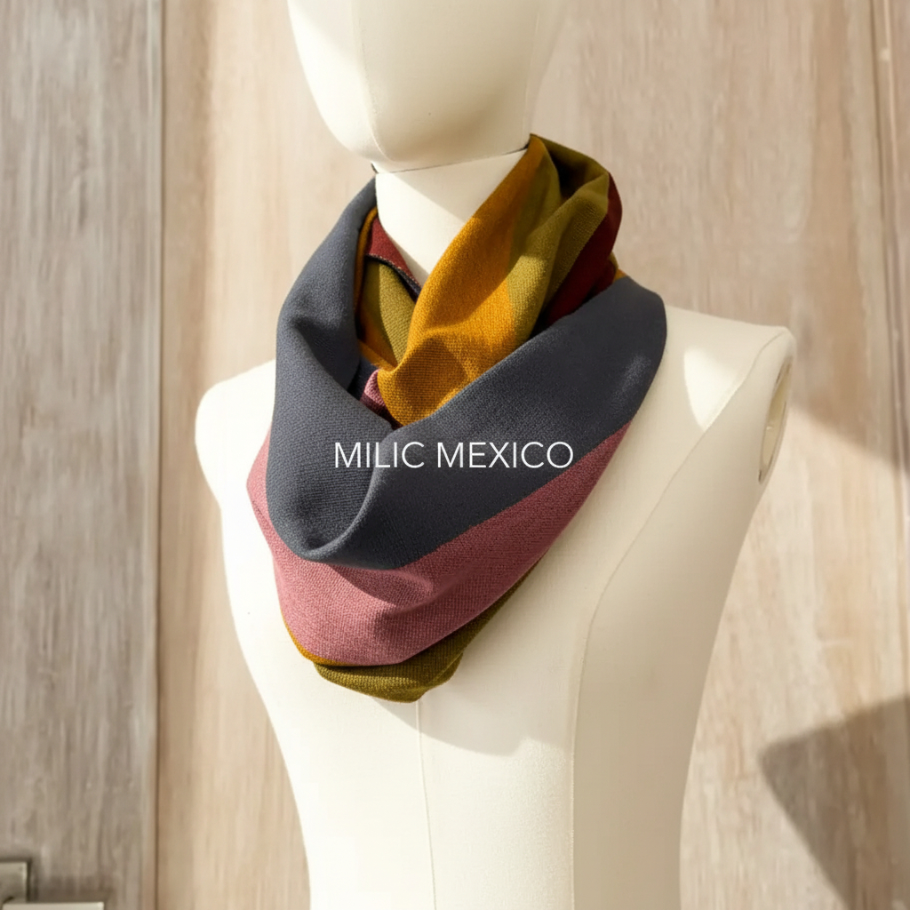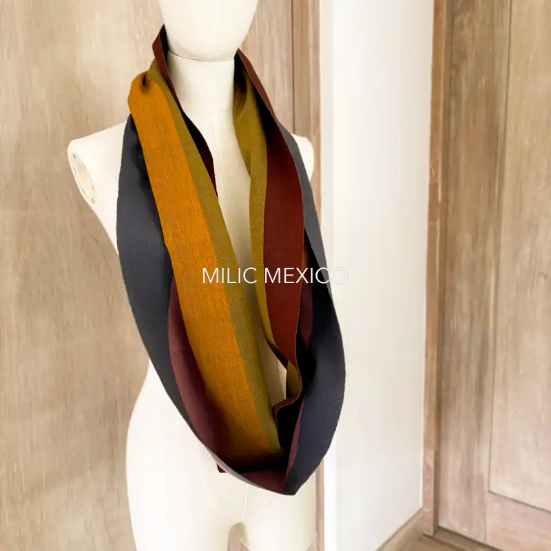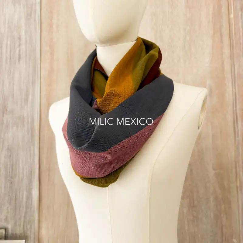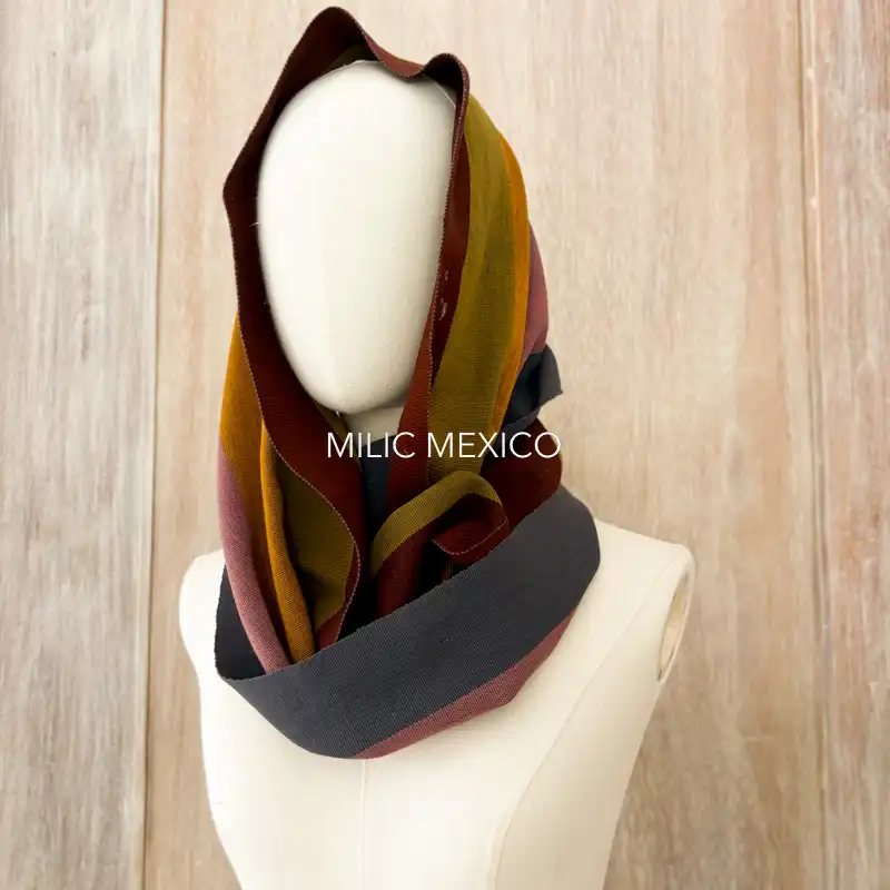 Una bufanda hecha en telar, llena de los colores de México, es un accesorio ideal para cualquier ocasión. ¡Que el frio no te opaque tu estilo! Elige siempre accesorios artesanales mexicanos.