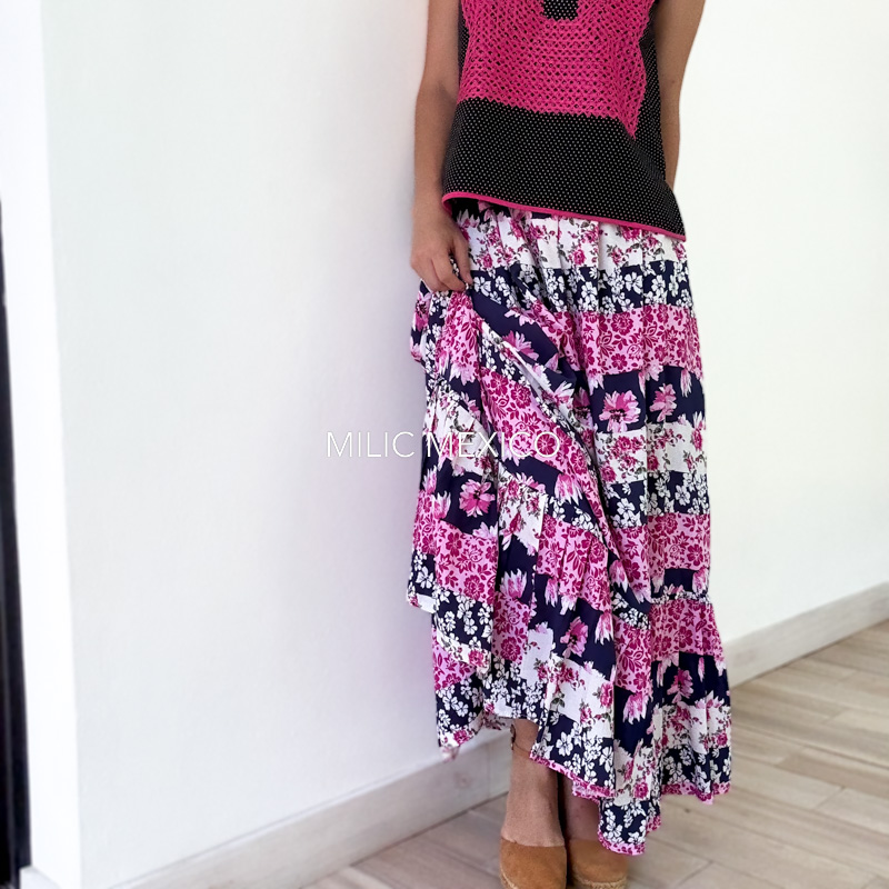 Falda Guichicovi rayón estampado azul/rosa – Unitalla