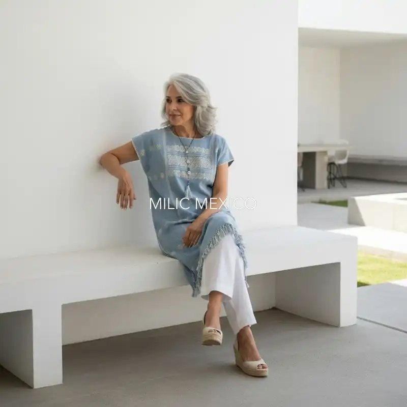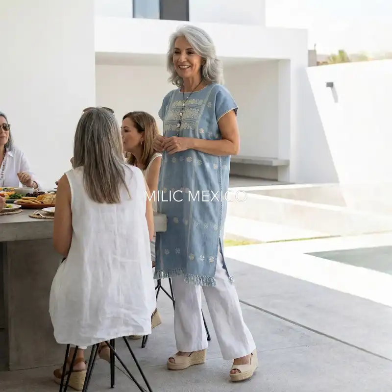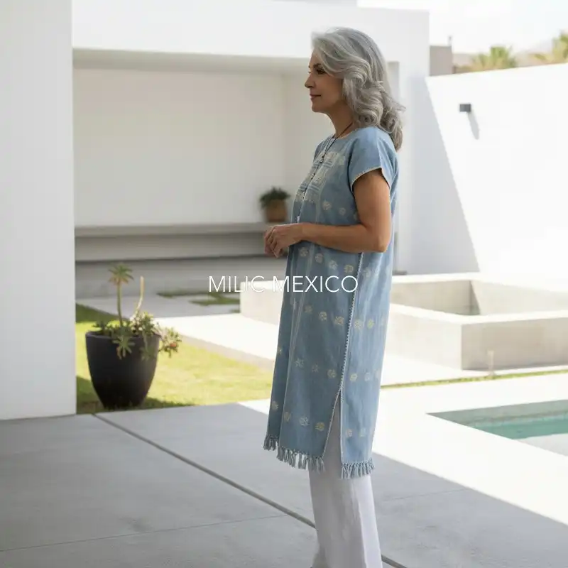 Etiquetas: Amuzgo, Azul Cielo, Guerrero, Huipiles, Talla grande