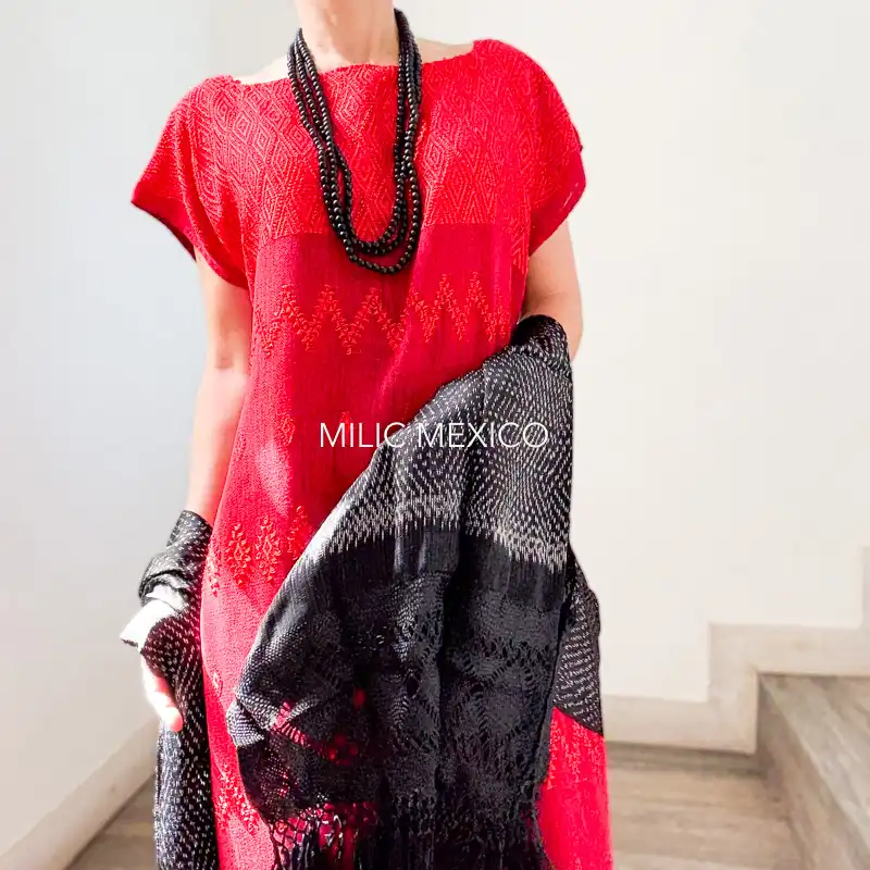 Delicada pieza de telar de cintura brocada en líneas horizontales por ambos lados en hilo de artisela a tono, lo que le otorga un sutil brillo y una extraordinaria elegancia. Es una prenda ligera, ideal para combinar con tus mejores accesorios.
