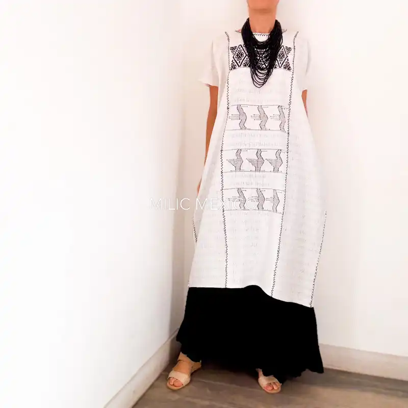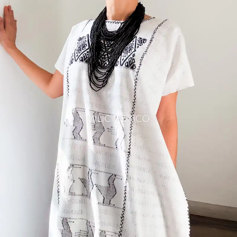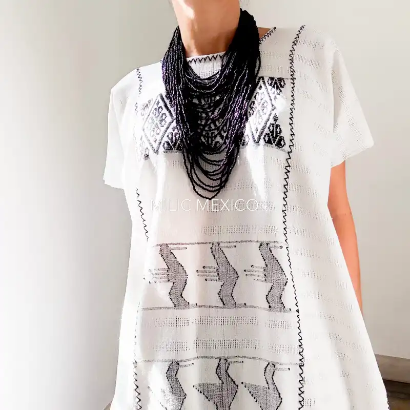 Huipil San Juan Cotzocón 3 lienzos blanco/negro- 2XG