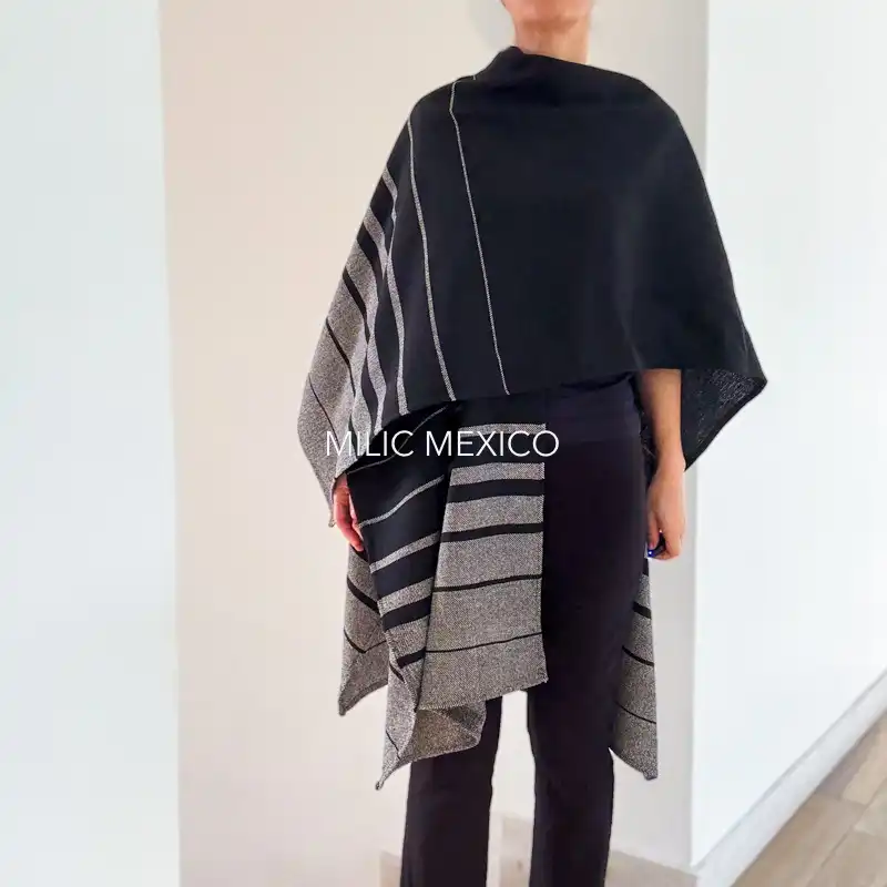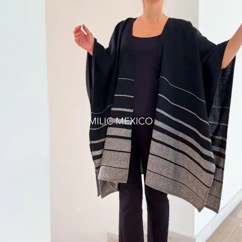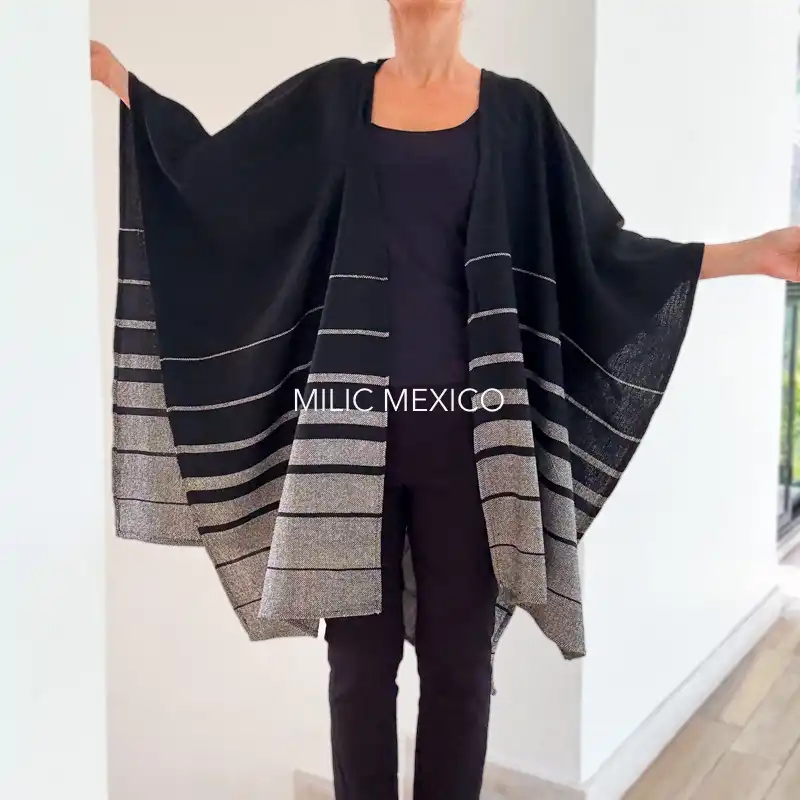 Ruana Mitla negro rayas degradadas