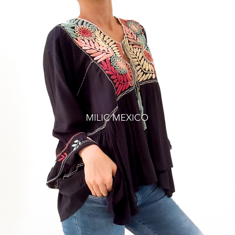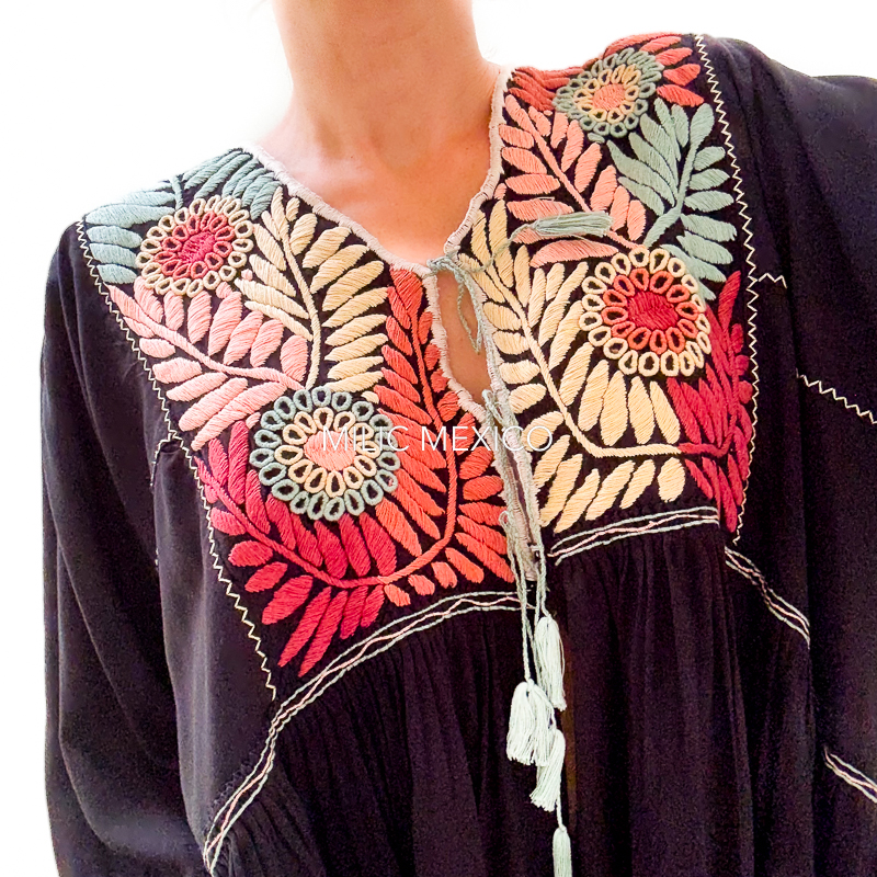 Blusas mexicanas artesanales hechas a mano en tela de rayón y pechera bordada, abierta por el frente. No pierdas la oportunidad de tener una prenda única. Origen: Aguacatenango, Chiapas