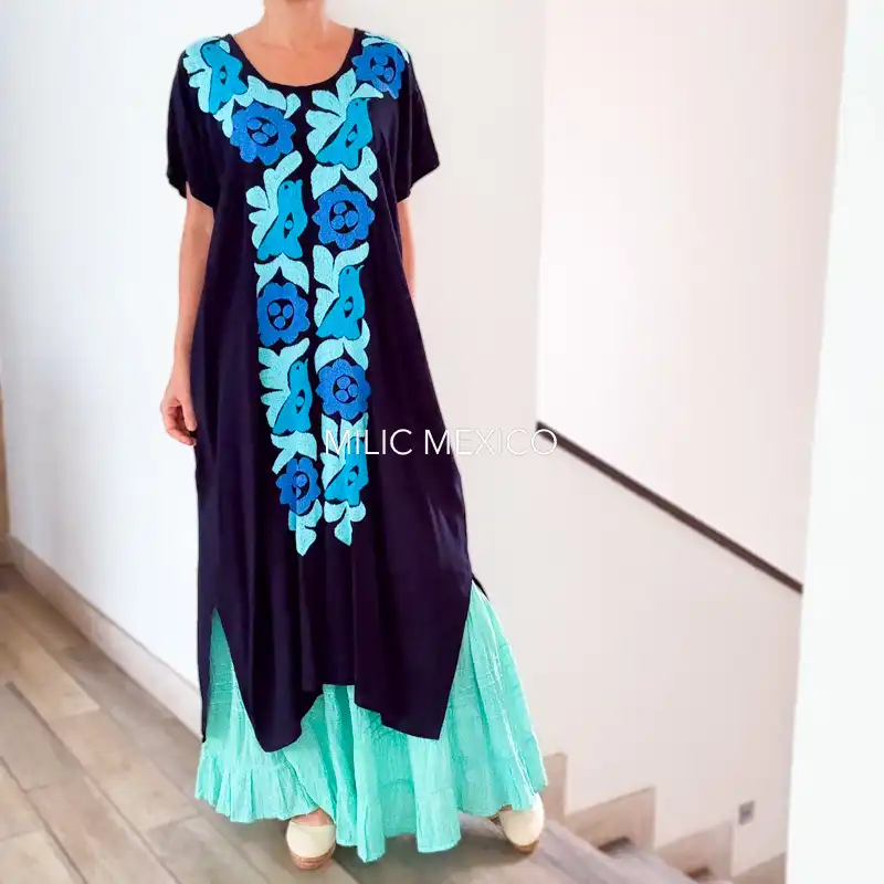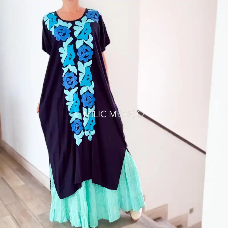 Una prenda cómoda, ligera, fresca y versátil ¡Un toque artesanal a tu look casual! Túnica artesanal mexicana en tela de rayón con bolsas, bordada a mano. Origen: Jalapa de Díaz, Oaxaca.