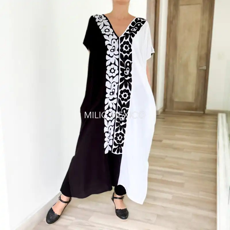 Una prenda cómoda, ligera, fresca y versátil ¡Un toque artesanal a tu look casual! Túnica artesanal mexicana en tela de rayón con bolsas, bordada a mano. Origen: Jalapa de Díaz, Oaxaca.