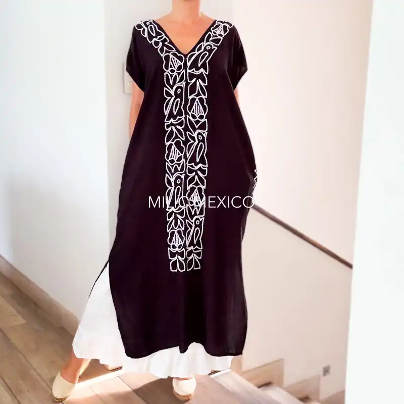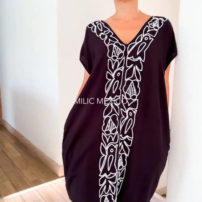 Una prenda cómoda, ligera, fresca y versátil ¡Un toque artesanal a tu look casual! Túnica artesanal mexicana en tela de rayón con bolsas, bordada a mano. Origen: Jalapa de Díaz, Oaxaca.