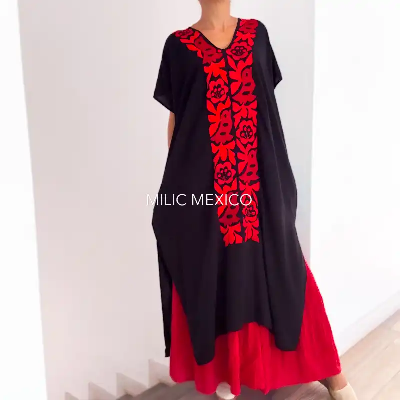 Túnica Jalapa de Díaz negro/rojo – Unitalla Curvy
