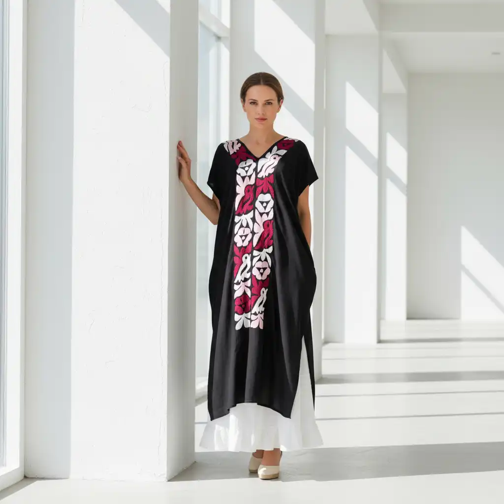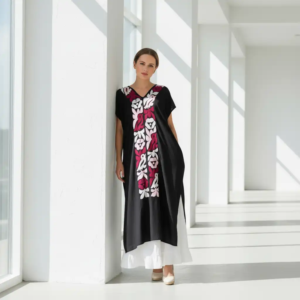 Una prenda cómoda, ligera, fresca y versátil ¡Un toque artesanal a tu look casual! Túnica artesanal mexicana en tela de rayón con bolsas, bordada a mano. Origen: Jalapa de Díaz, Oaxaca.