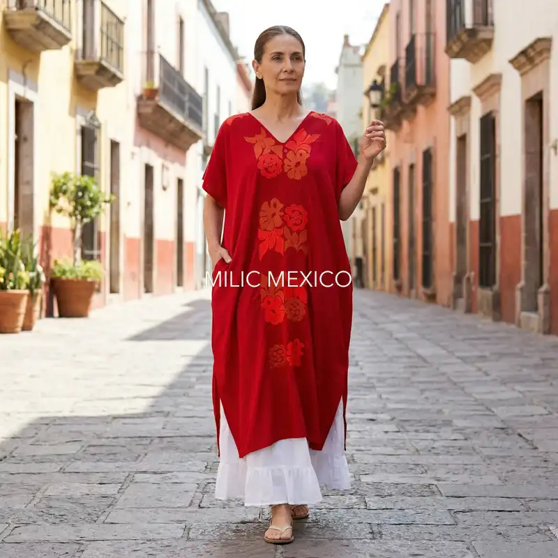 29Una prenda cómoda, ligera, fresca y versátil ¡Un toque artesanal a tu look casual! Túnica artesanal mexicana en tela de rayón con bolsas, bordada a mano. Origen: Jalapa de Díaz, Oaxaca.