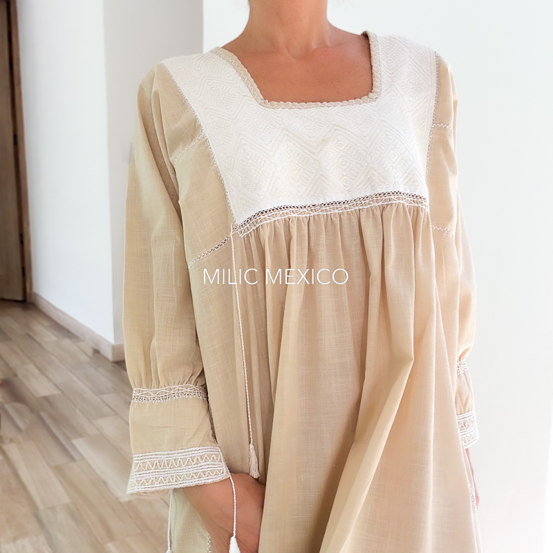 Etiquetas: Beige, Chiapas, San Andrés Larrainzar, Talla mediana, Vestidos Artesanales