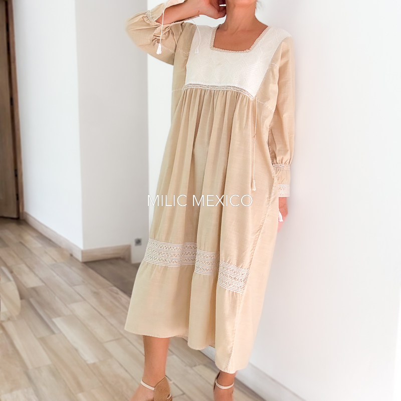 Vestido Cadenita lino beige – M