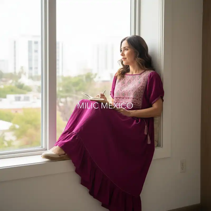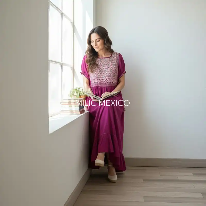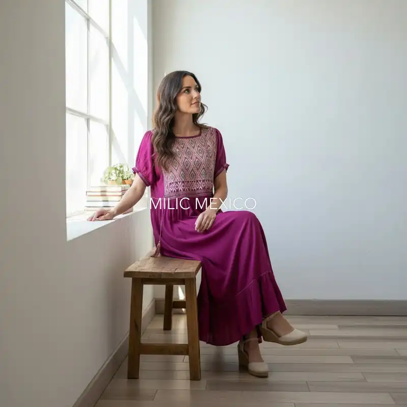 Los vestidos artesanales mexicanos Paloma tienen la característica de ser artesanales, femeninos y únicos. Son producto de la combinación de manos artesanas de dos comunidades chiapanecas: San Andrés Larrainzar y Chenelhó tejidas en telar y costuradas a mano.