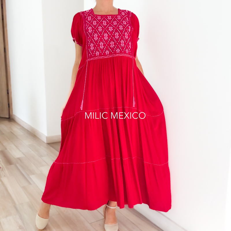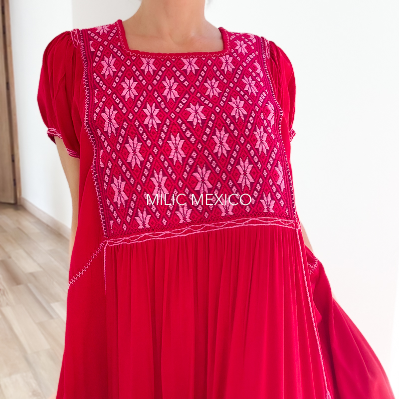 Etiquetas: Chiapas, Rojo, San Andrés Larrainzar, Talla XXG, Vestidos Artesanales