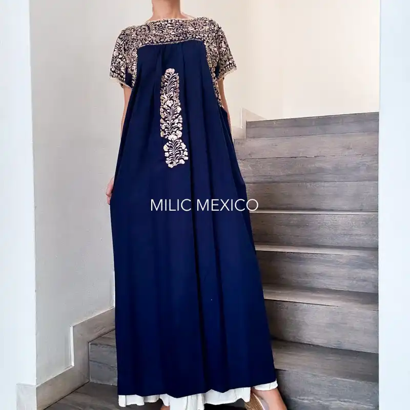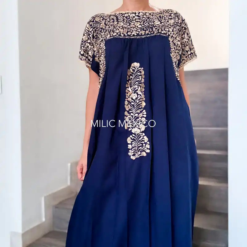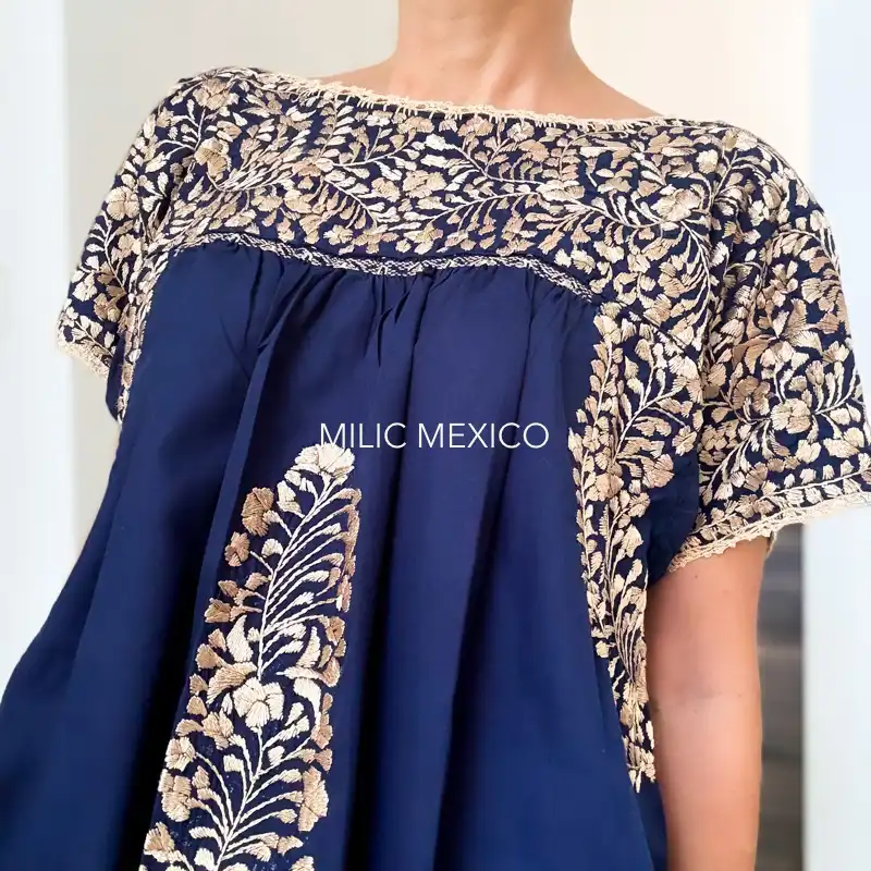 Etiquetas: Azul, Beige, Bordado, Oaxaca, San Antonino, Talla grande, Vestidos Artesanales