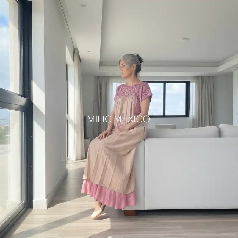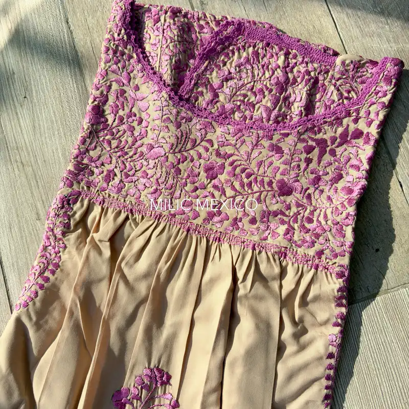 Etiquetas: Beige, Bordado, Oaxaca, San Antonino, Talla grande, Vestidos Artesanales