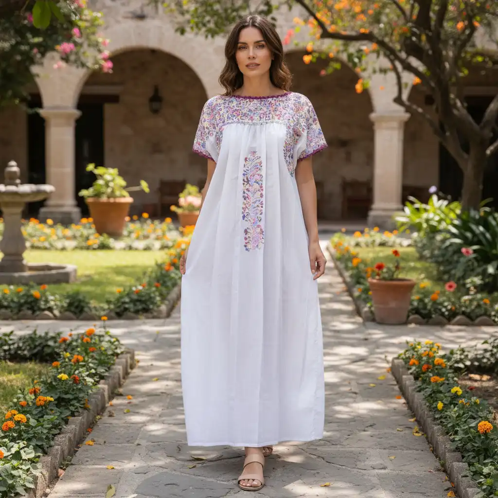 San Antonino Castillo Velasco es conocido como la tierra de las flores, que inspira a sus artesanos a bordar jardines coloridos y brillantes en sus tradicionales blusas artesanales y vestidos artesanales mexicanos de tela de popelina. La belleza de estas piezas está en sus colores, texturas y en cada detalle donde los artesanos tejen sus flores y su inspiración.