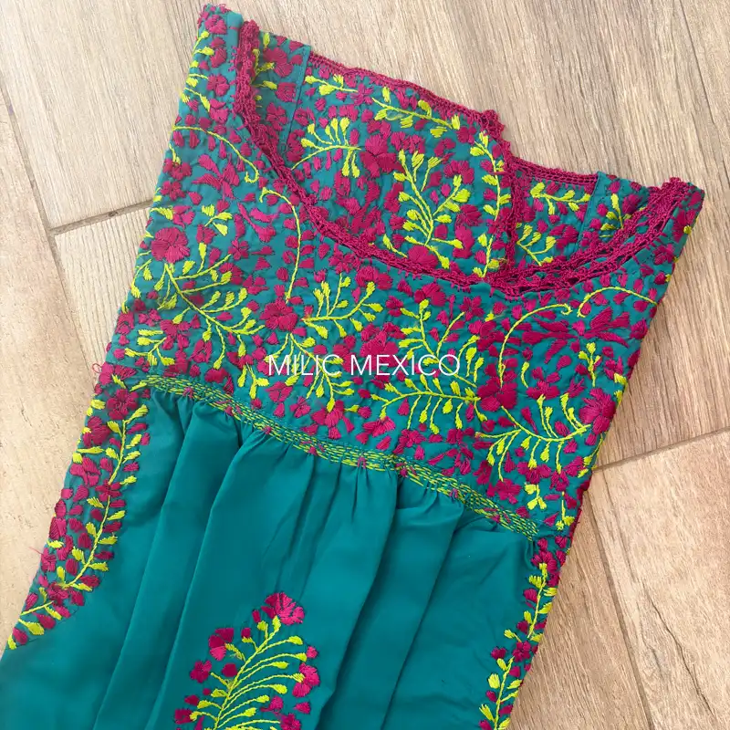 Etiquetas: Bordado, Oaxaca, San Antonino, Talla grande, Verde jade, Vestidos Artesanales