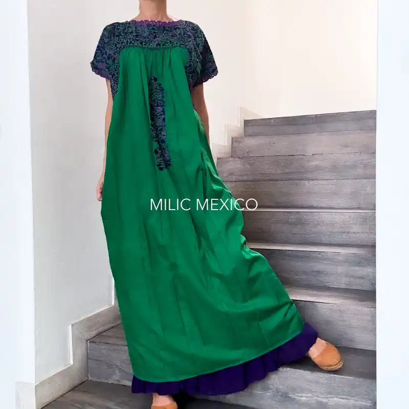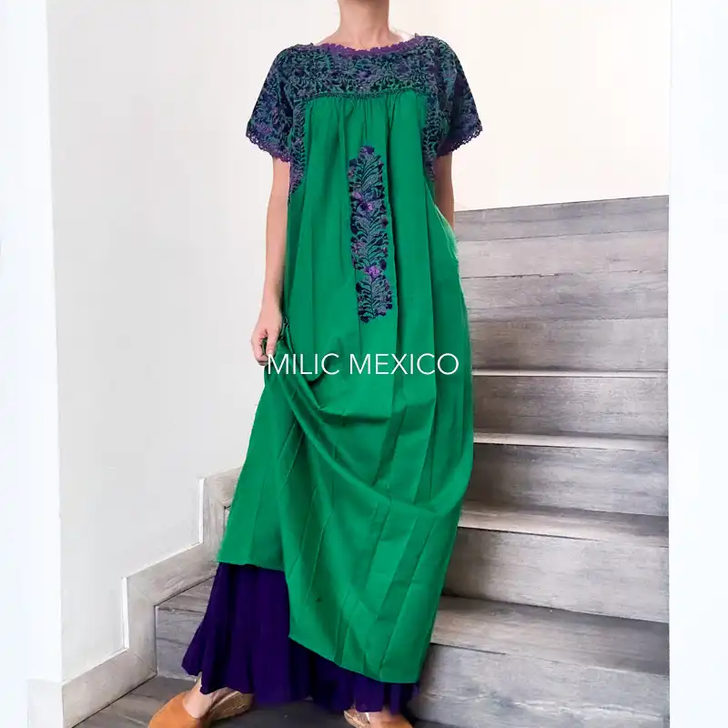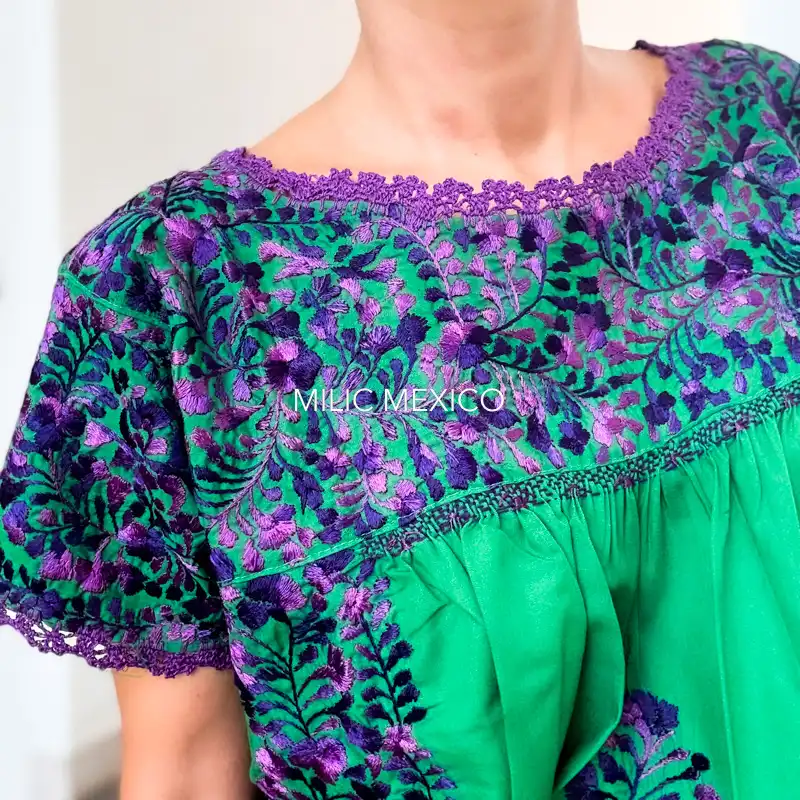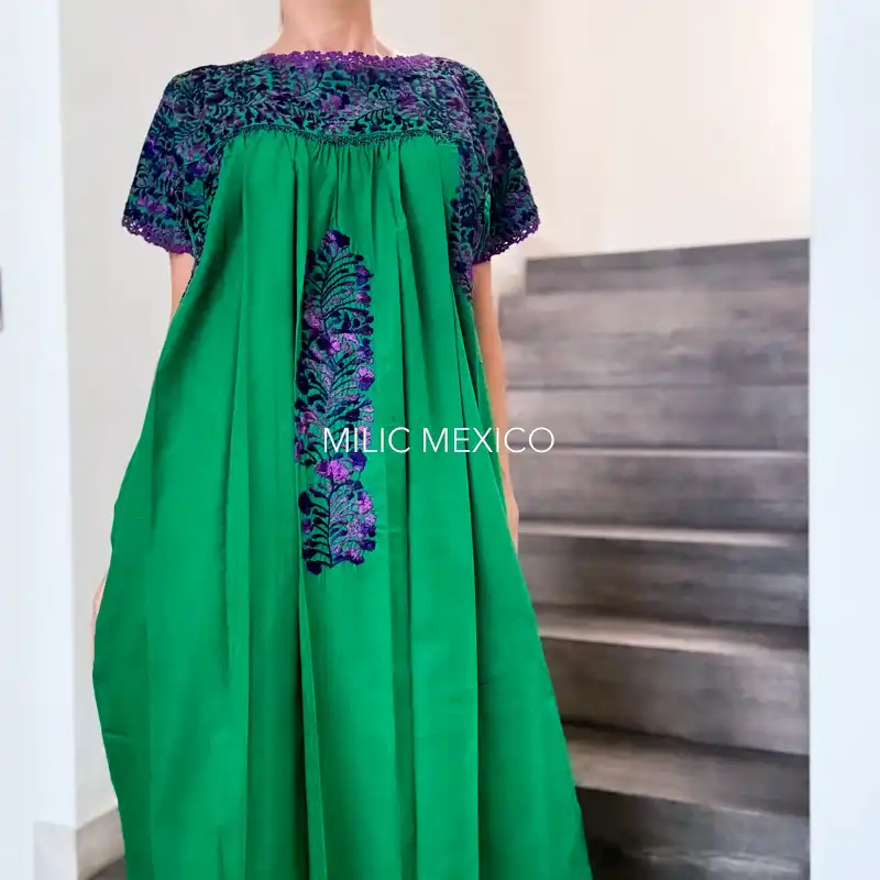 Etiquetas: Bordado, Morado, Oaxaca, San Antonino, Talla grande, Verde, Vestidos Artesanales